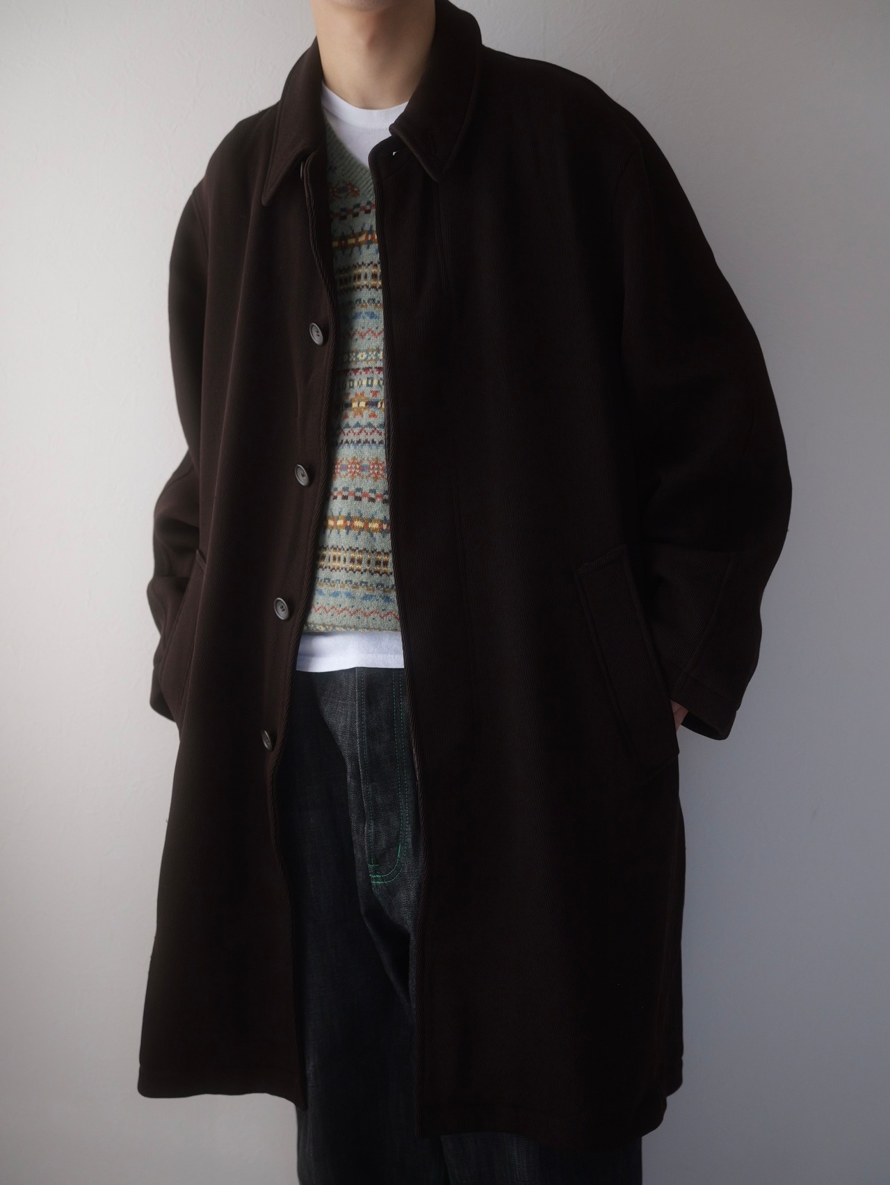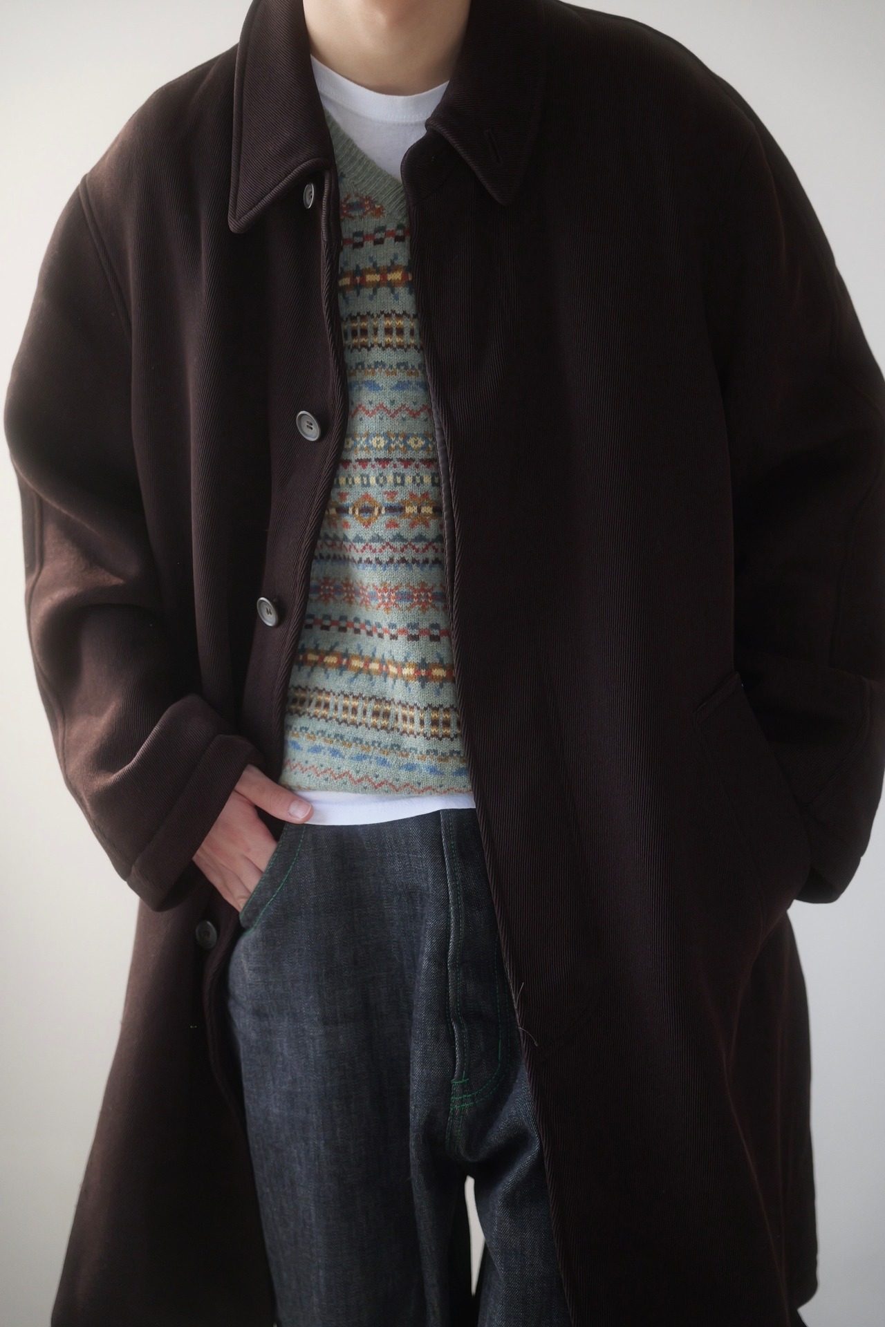 ウールギャバジンのステンカラーコート