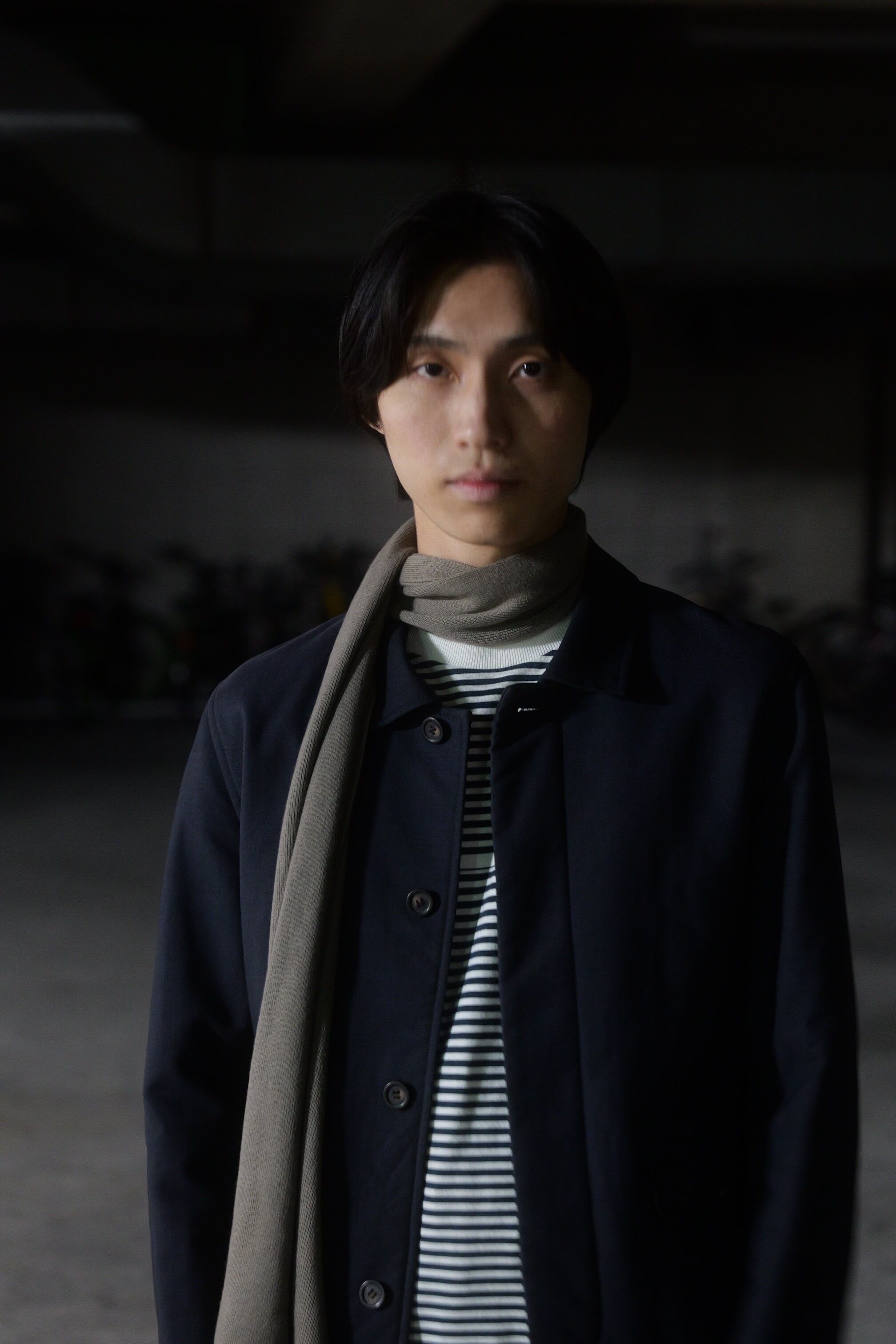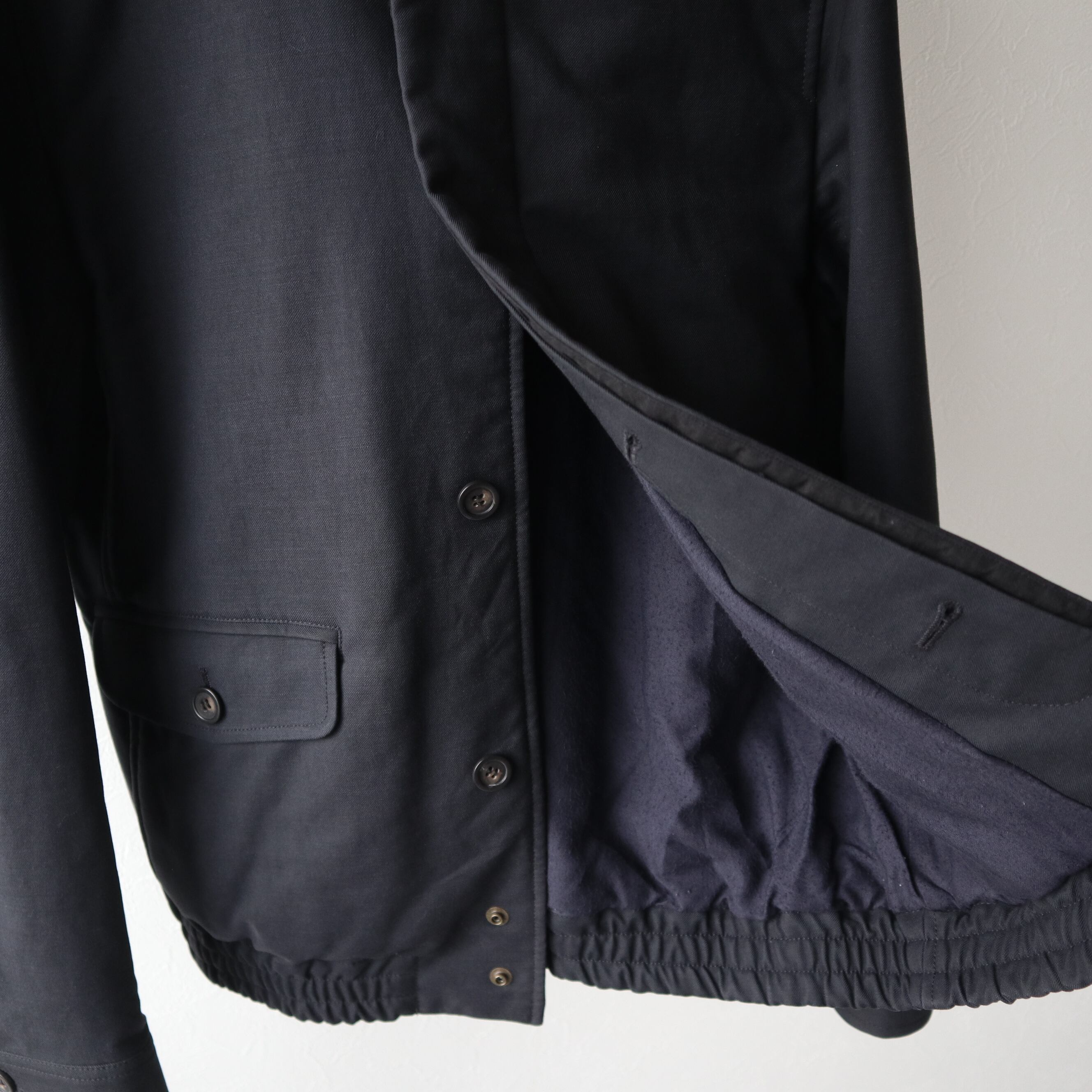 彩度の低いドライなネイビーのブルゾン