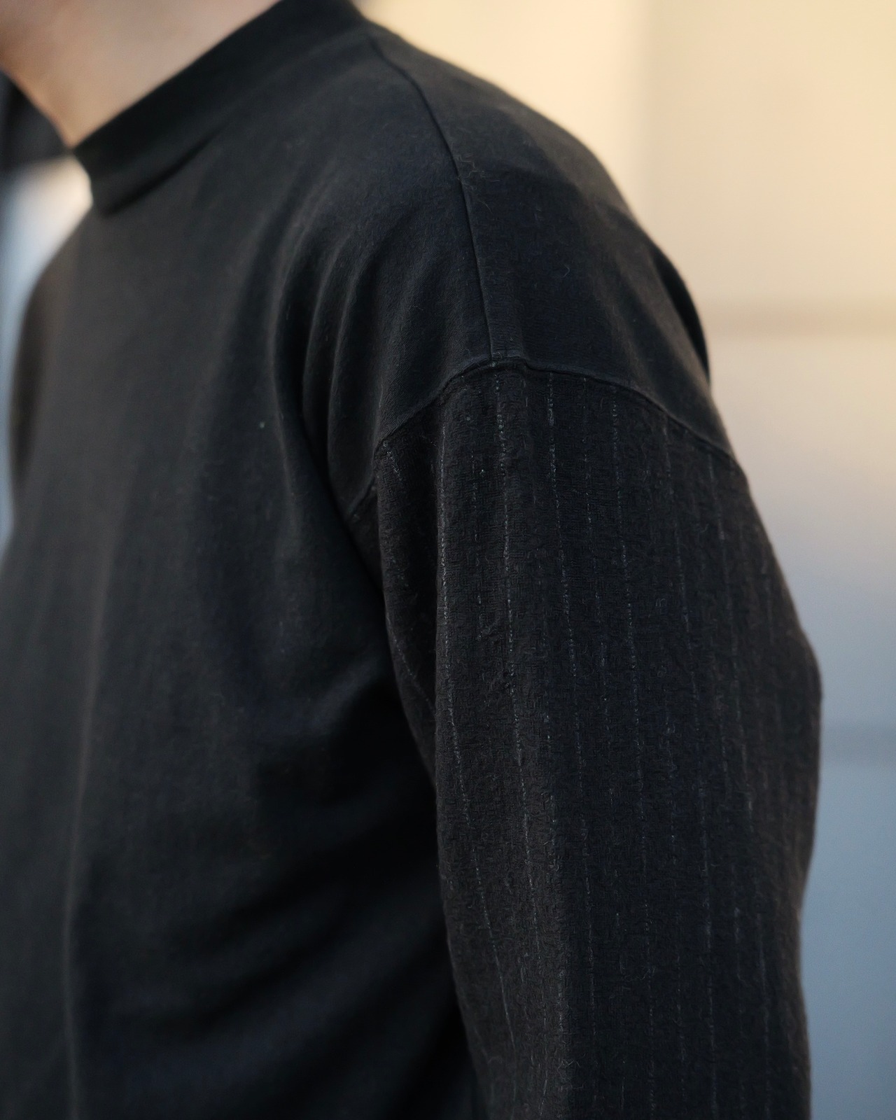 首を締めつけすぎない、ボディと共地での特殊なモックネックの作りで、アンニュイな雰囲気がギャルソンらしくて気に入っております. 私自身も別の個体のものですが、愛用しています.