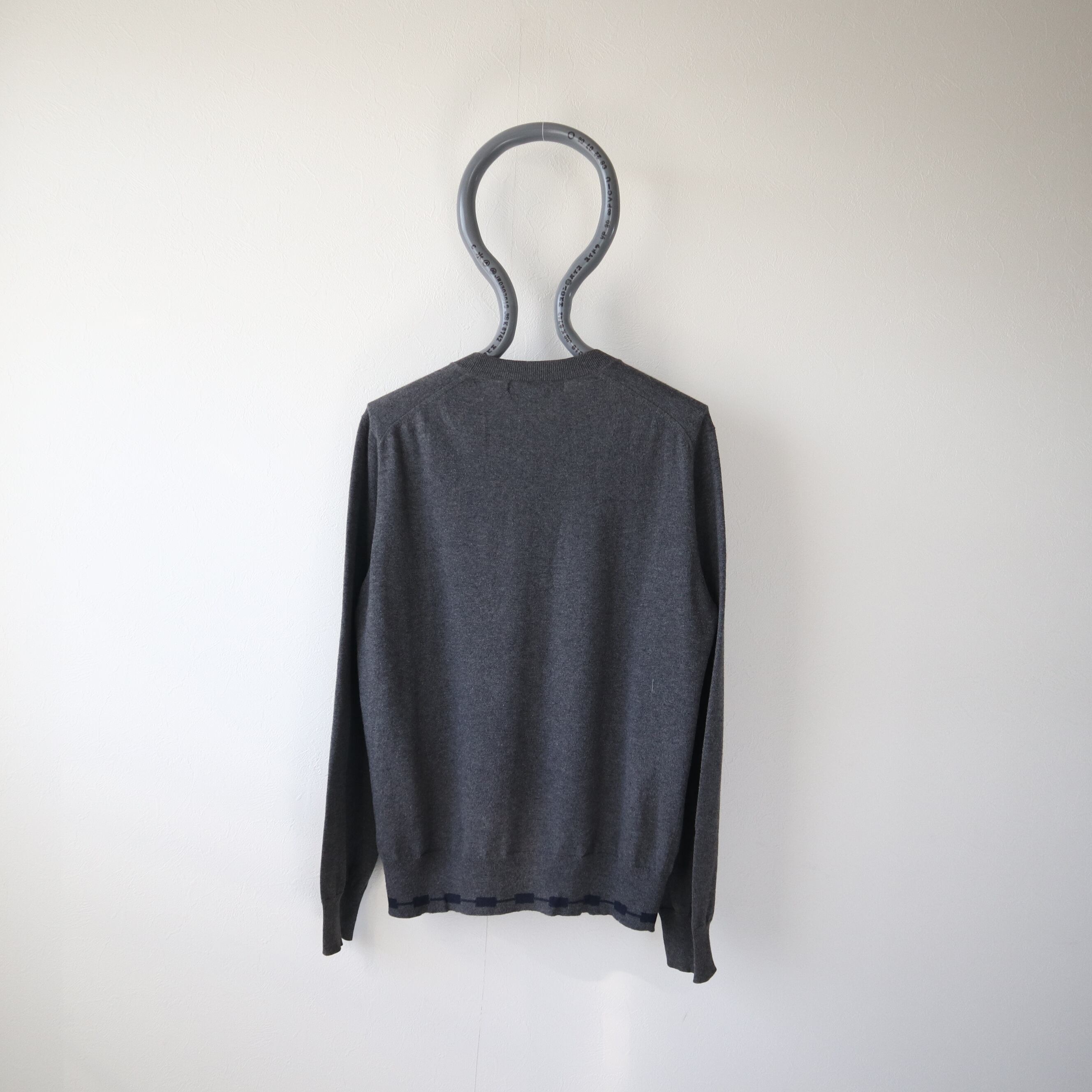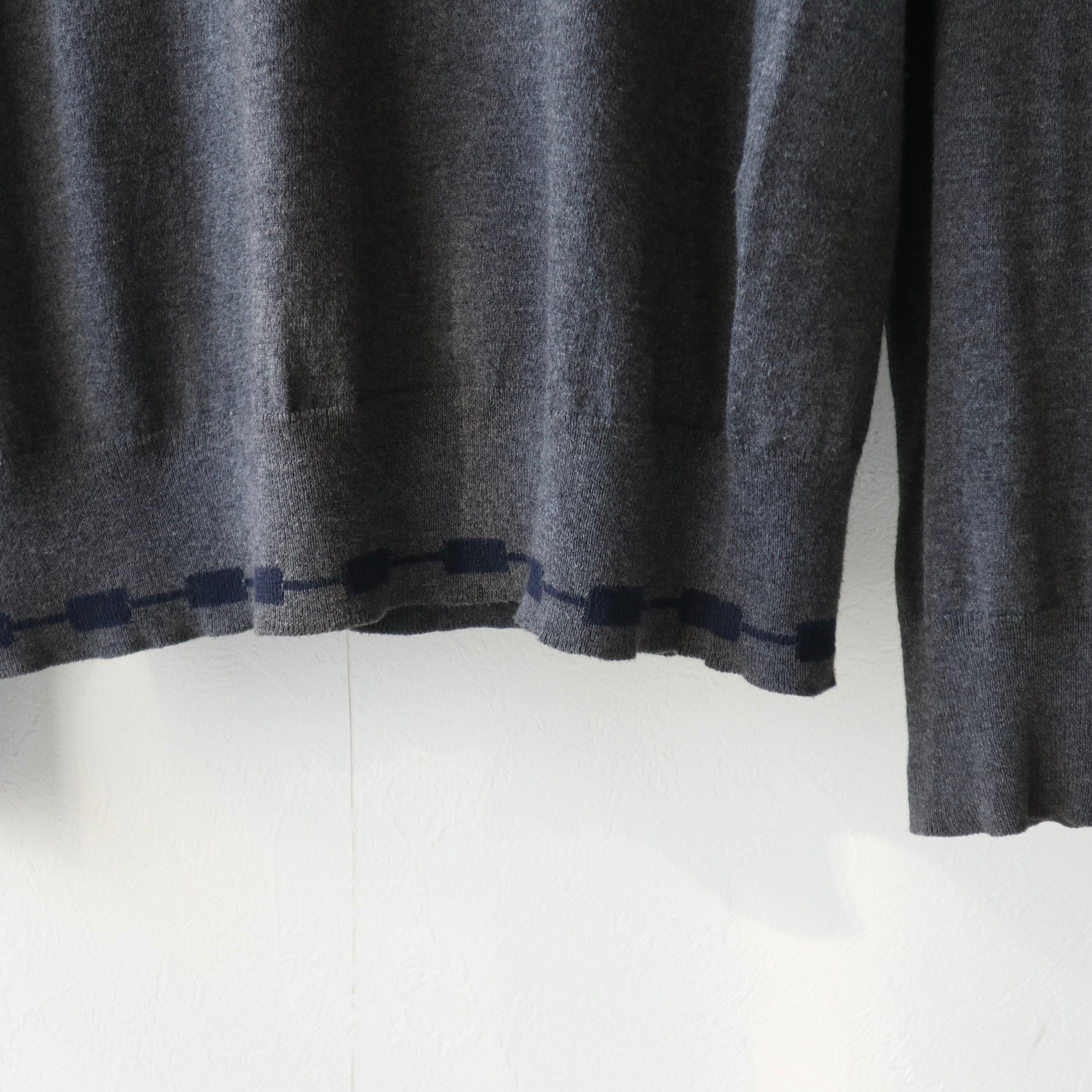 裾のリブにはネイビーのライン状の柄